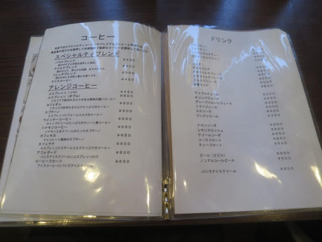 Beverage choices encompass a range of coffee drinks, including espresso, ウインナーコーヒー (Viennese coffee), and coffee floats (コーヒーフロート). These offerings support typical cafe activities such as casual dining and quick orders.